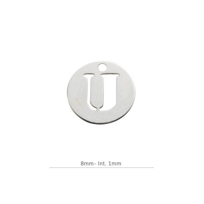 Pendentif à charme lettre ronde U. 8 mm avec perceuse 1,2 mm