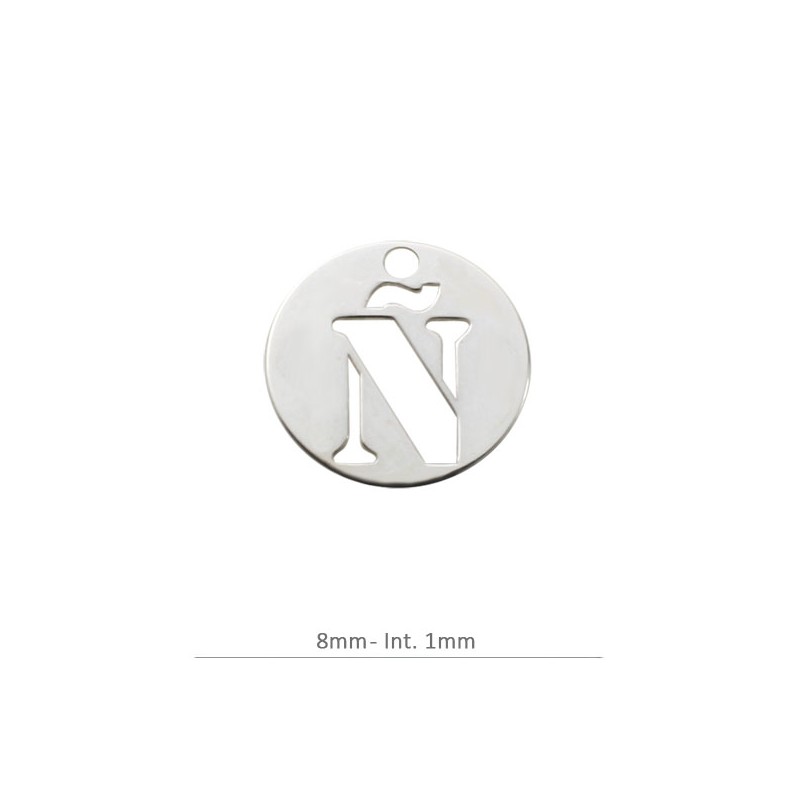 Lettre pendentif Rond Charm Ñ. 8 mm avec perceuse 1,2 mm