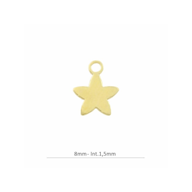 Mini pendentif étoile argent 925 doré. La taille extérieure est de 8 mm et l’anneau de 1,5 mm. Parfait pour orner les bracelets de plusieurs pendentifs variés.