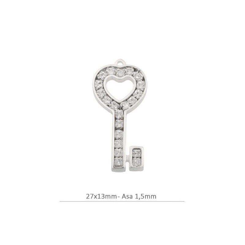 Pendentif clé 27 x 12,7 mm avec anneaux et chaîne strass Swarovski