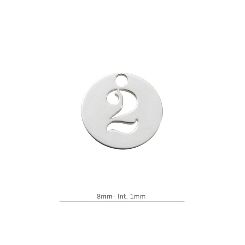 Pendentif rond numéro 2. Taille 8 mm avec perceuse 1,2 mm
