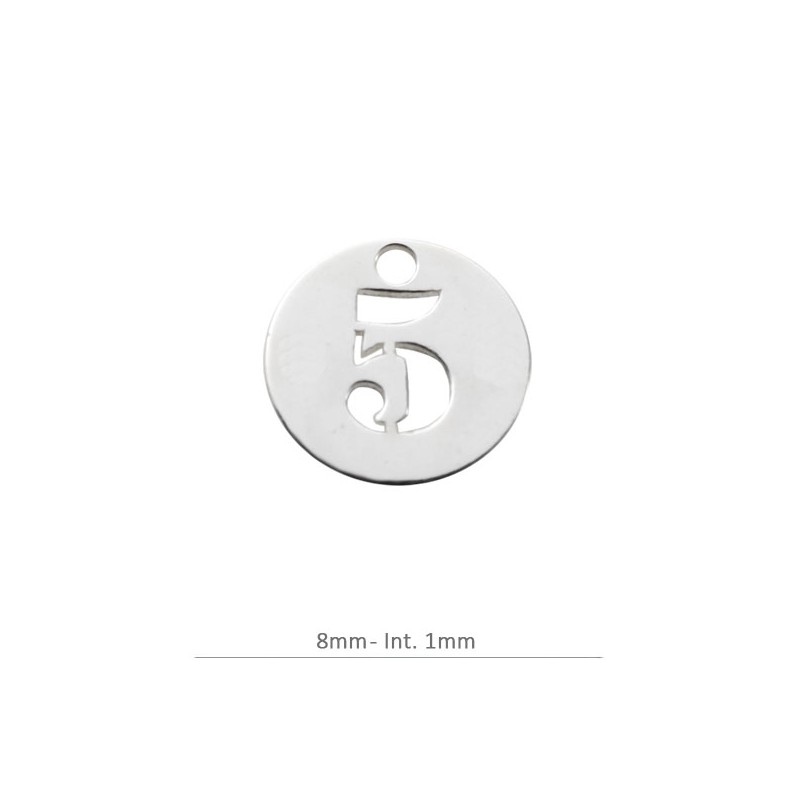 Pendentif rond numéro 5. Taille 8 mm avec perceuse 1,2 mm