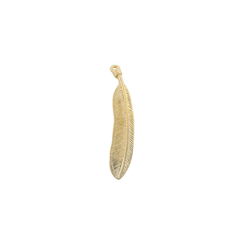 Plume pendentif de 44x9mm. Doré de haute qualité