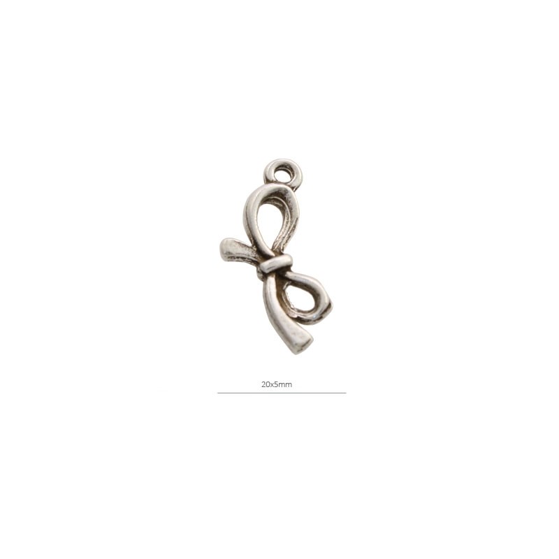 - Pendentif lacito de zamac avec argenté. - Il a une taille de 20x5 millimètres. - Le prix est par sac et le sac contient deux unités.