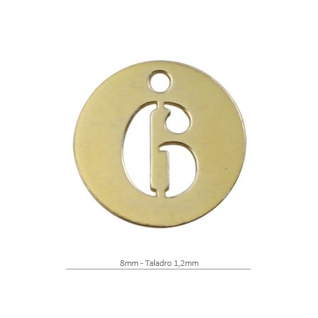 - Pendentif rond avec des chiffres en argent avec placage d’or. - La taille est de 8 millimètres avec une perceuse de 1,2 millimètre. - Le prix est par unité.
