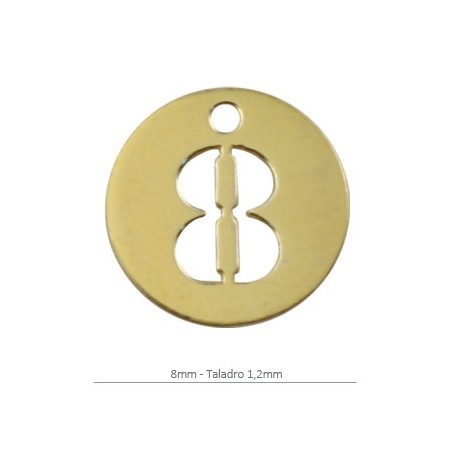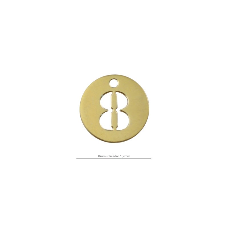 - Pendentif rond avec des chiffres en argent avec placage d’or. - La taille est de 8 millimètres avec une perceuse de 1,2 millimètre. - Le prix est par unité.