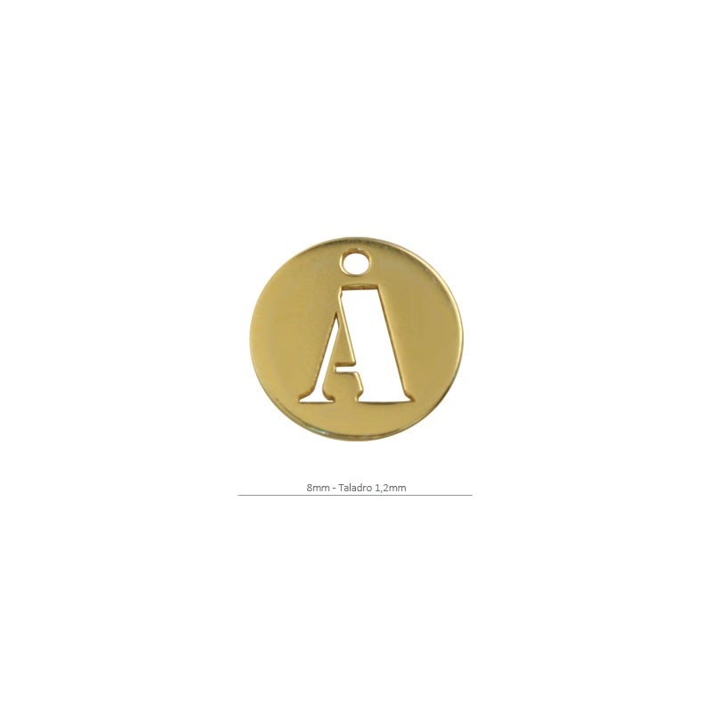 - Pendentif rond avec des lettres d’argent avec placage d’or. - La taille est de 8 millimètres avec une perceuse de 1,2 millimètre. - Le prix est par unité.