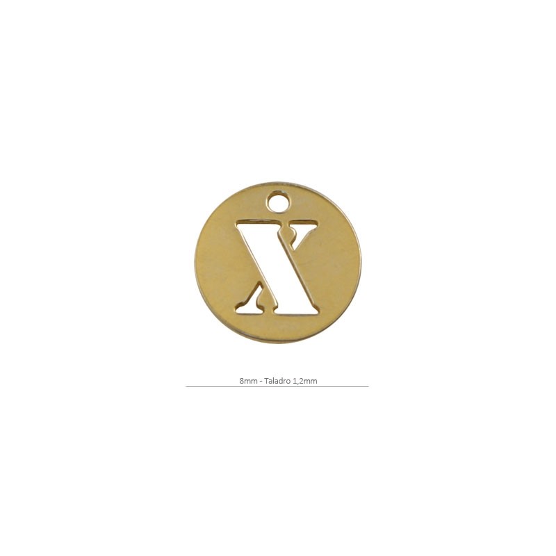 - Pendentif rond avec des lettres d’argent avec placage d’or. - La taille est de 8 millimètres avec une perceuse de 1,2 millimètre. - Le prix est par unité.