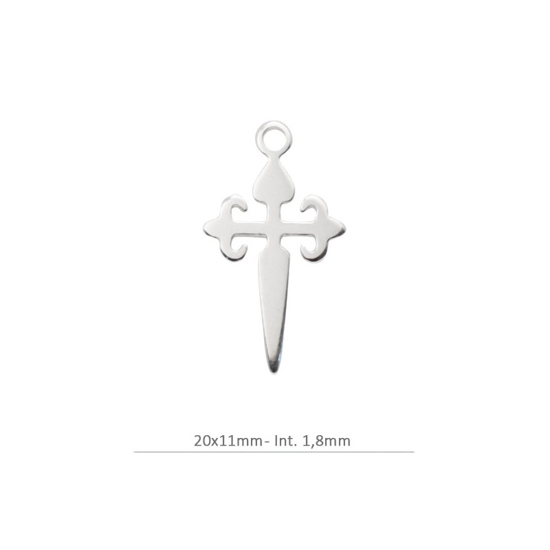 Pendentif croix de Santiago avec anneau en argent sterling 925. Fabriqué en Espagne.