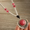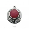 - Pendentif nid rond en zamac avec argenté avec résine de couleur rouge. - La taille est de 33 millimètres. - Le prix est par unité.