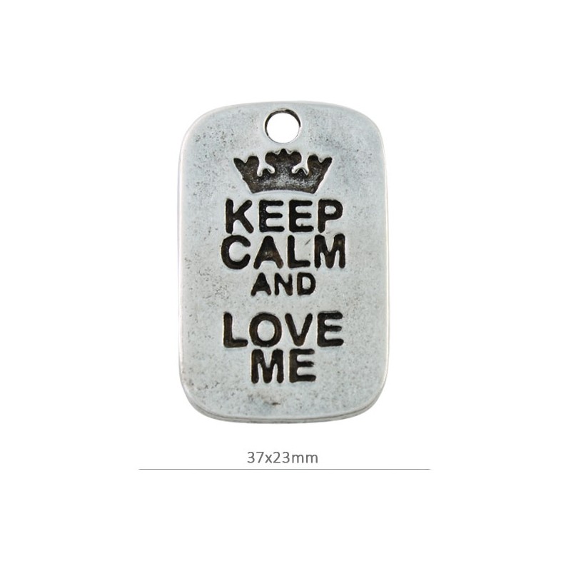 - Plaque pendentif « Restez calme et aimez-moi » dans zamac argenté. - Le prix est par unité.