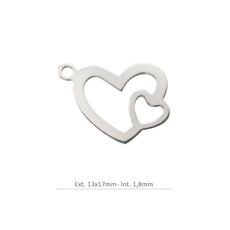 Pendentif silhouette deux coeurs avec anneau en argent sterling 925. Fabriqué en Espagne.