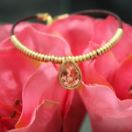 Pendentif en forme de larme 14x10mm avec cristal Swarovski. Pêche rose