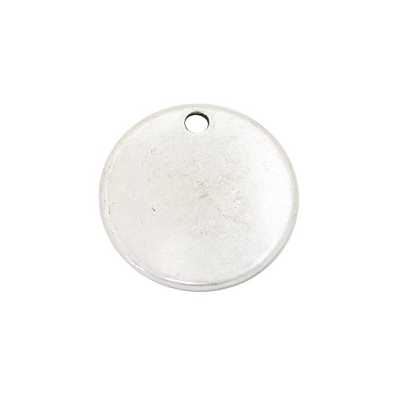 - Pendentif lisse à graver en zamac avec argenté. - La taille est de 25 millimètres. - Le prix est par unité.