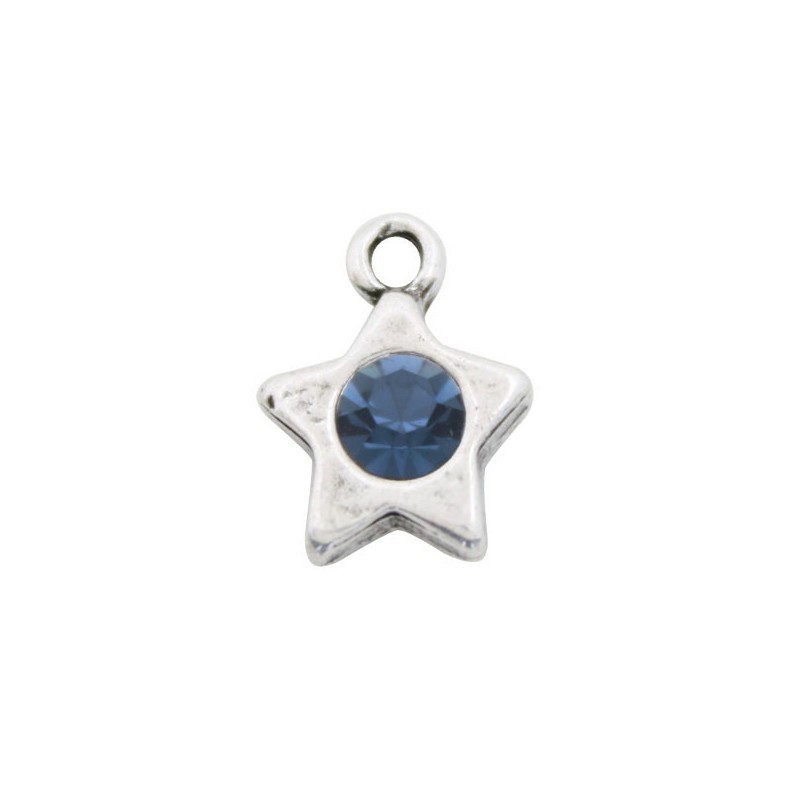 - Pendentif en étoile avec verre dans zamac avec argenté. - Deux cristaux sont inclus qui viennent sans coller à la base - La taille est de 12 millimètres. - Le prix est par sac et le sac contient 2 unités.