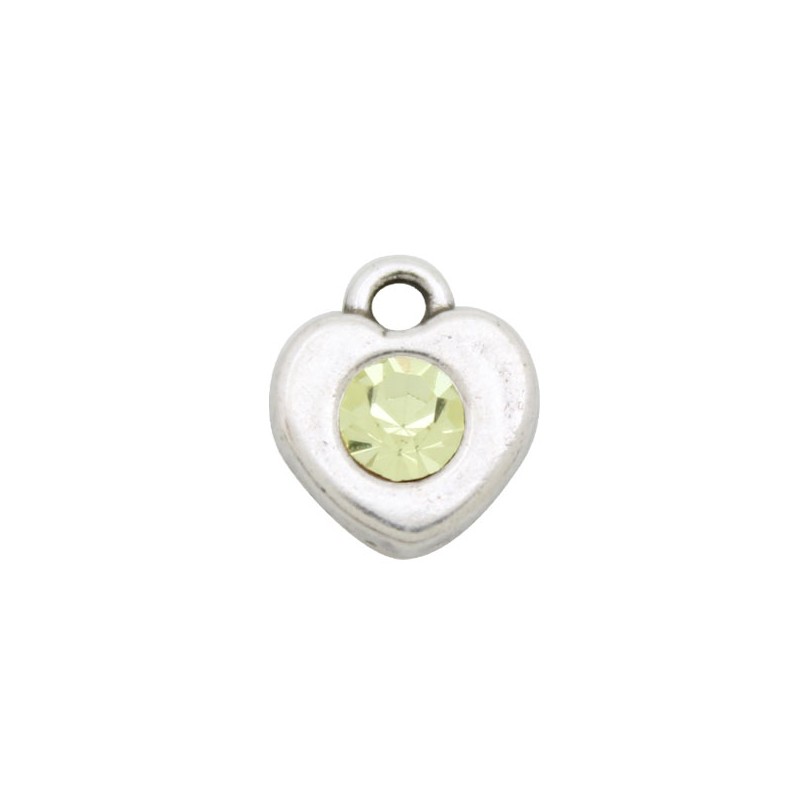 - Pendentif de cœur avec verre dans zamac avec argenté. - Deux cristaux sont inclus qui viennent sans coller à la base - La taille est de 11x10 millimètres. - Le prix est par sac et le sac contient 2 unités.