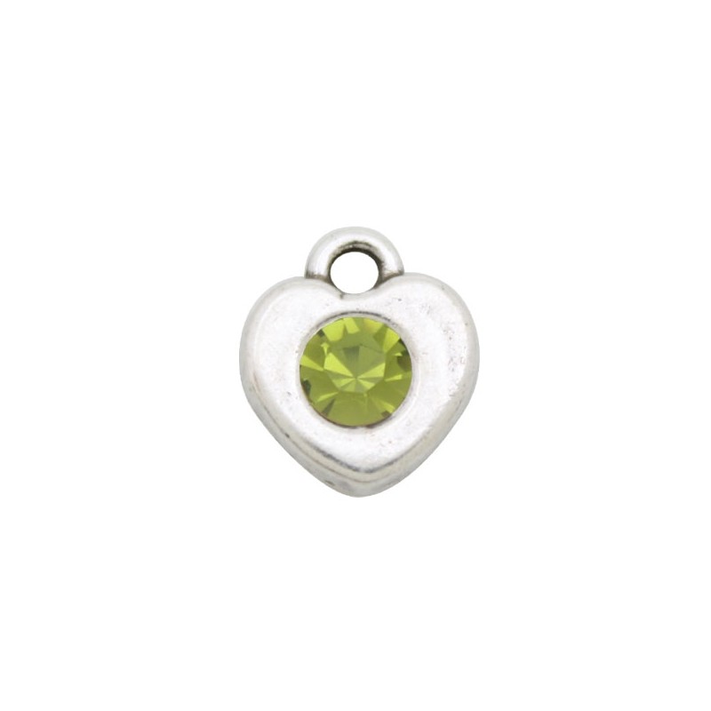 Pendentif coeur 11x10mm + verre. Olivine