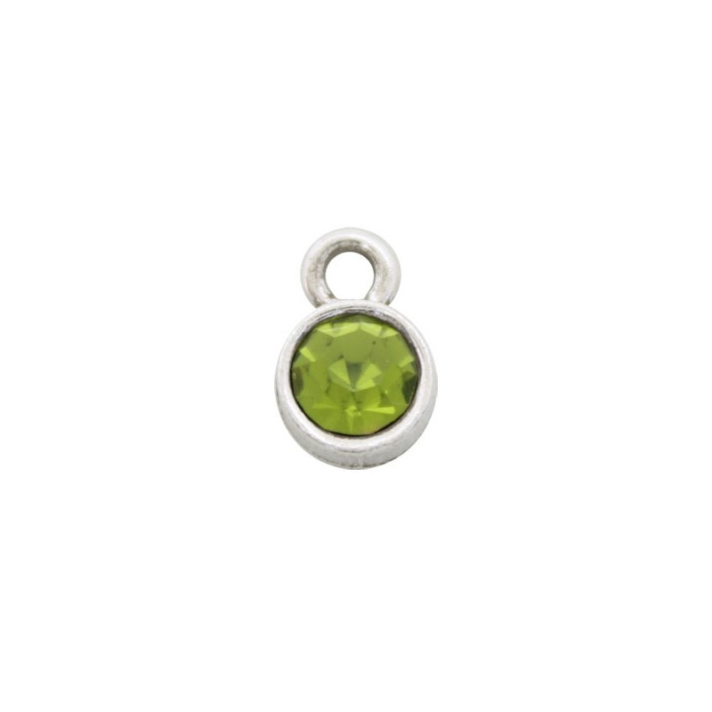 - Cercle pendentif avec verre dans zamac avec argenté. - Deux cristaux sont inclus qui viennent sans coller à la base. - La taille est de 8 millimètres. - Le prix est par sac et le sac contient 2 unités.