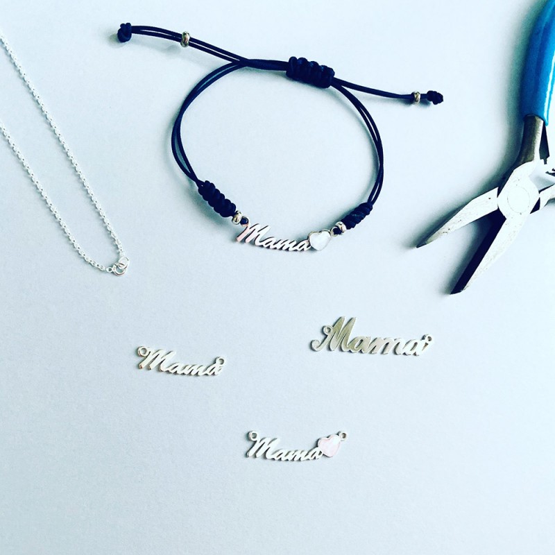 - Pièce de maman en argent 925. - Convient pour pendentif et intercalaire. - La taille est de 38x10 millimètres et a deux anneaux de 1,5 millimètres. - Le prix est par unité.