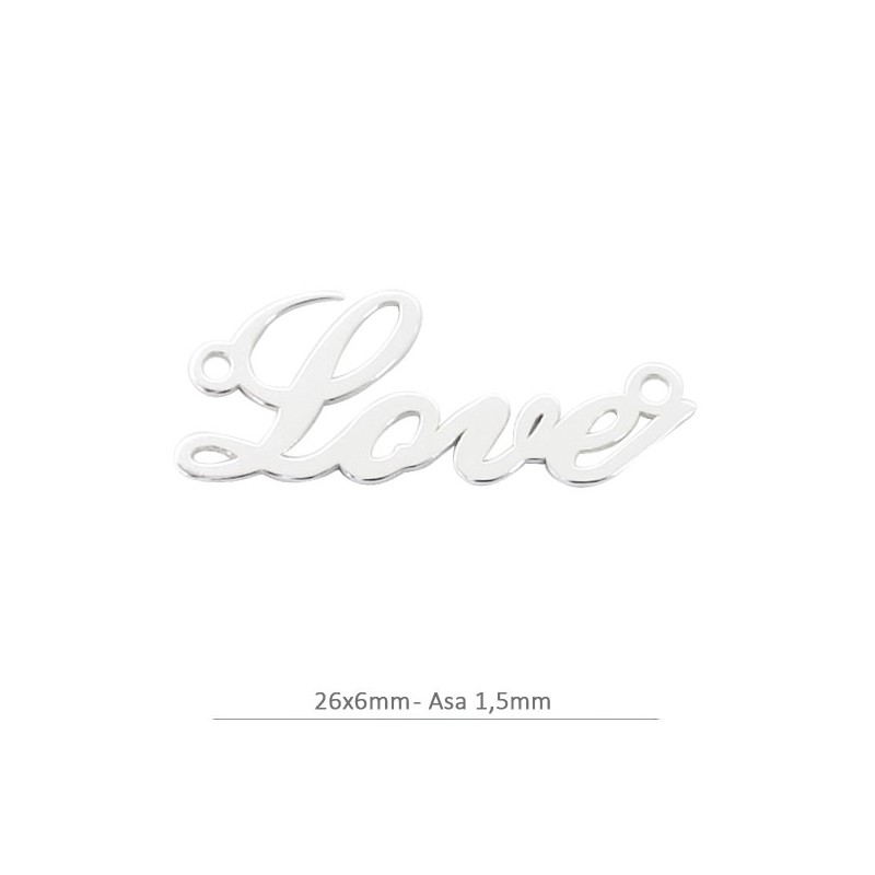 - Pièce « Love » en argent 925. - Convient pour pendentif et intercalaire. - La taille est de 26x6 millimètres et a deux anneaux de 1,5 millimètres. - Le prix est par unité.