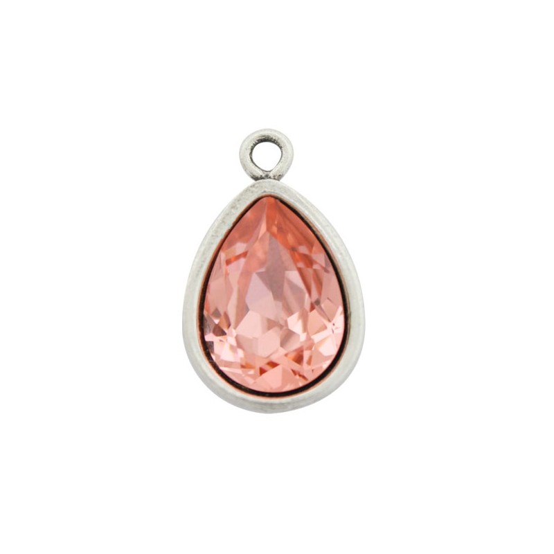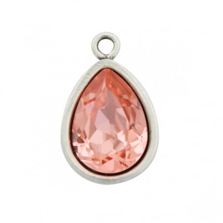 Pendentif en forme de larme 14x10mm avec cristal Swarovski. Pêche rose