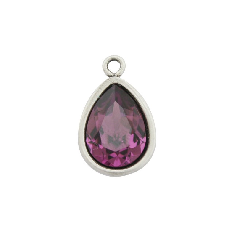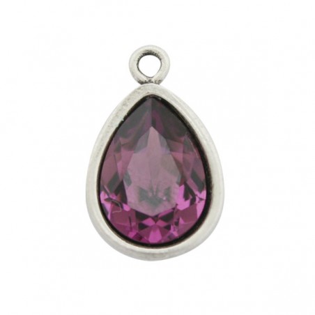 Pendentif en forme de larme 14x10mm avec cristal Swarovski. Améthyste
