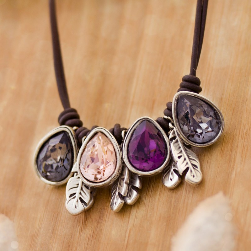 Pendentif en forme de larme 14x10mm avec cristal Swarovski. Soie légère