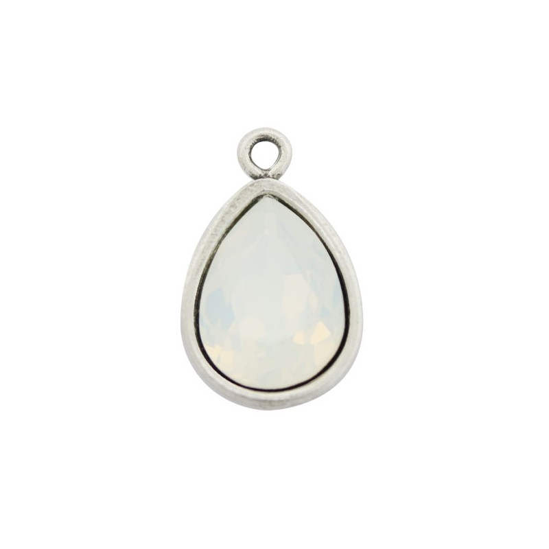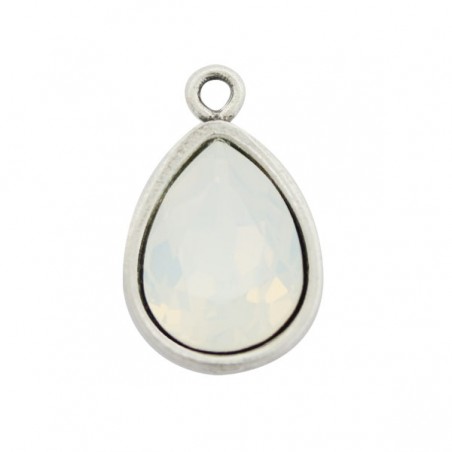 Pendentif en forme de larme 14x10mm avec cristal Swarovski. Opale blanche