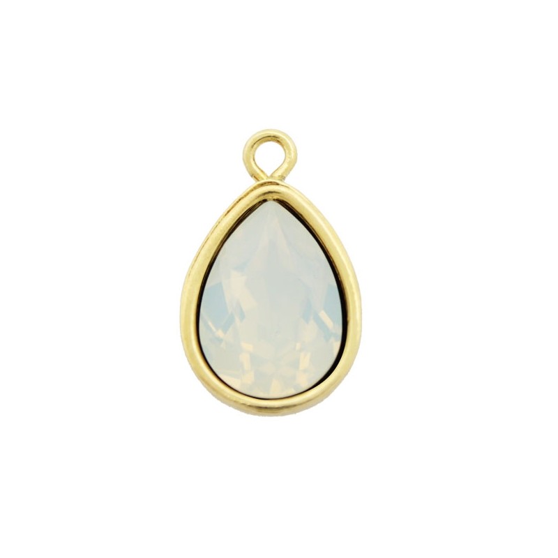 Pendentif en forme de larme 14x10mm avec cristal Swarovski. Opale blanche