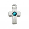 Pendentif croisé 22x12mm avec cristal Swarovski. Zircon bleu