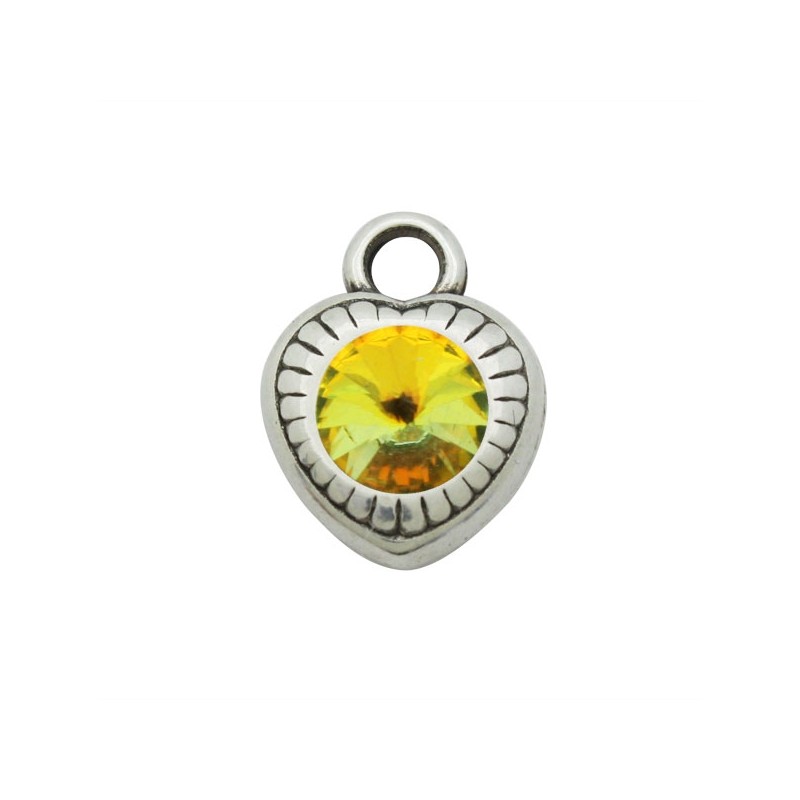 - Pendentif cœur avec cristal Swarovski en zamac doré. - Le tamaaño mesure 14x11 millimètres et dispose d’une perceuse de 3 millimètres. - Le verre vient sans coller à la pièce. - Le prix est par sac et le sac contient une unité.