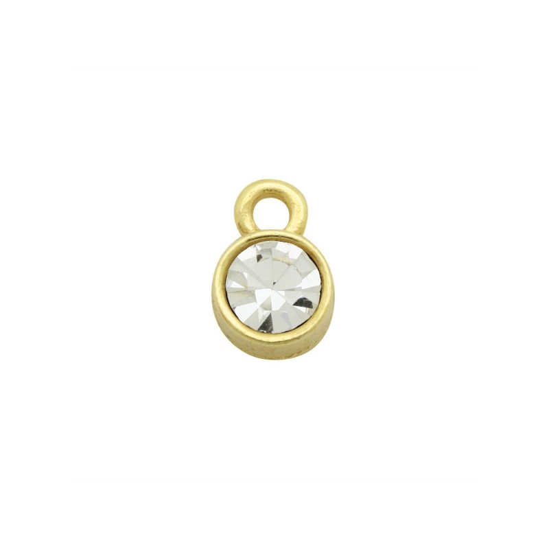 - Cercle pendentif avec verre dans zamac avec bain d’or. - Deux cristaux sont inclus qui viennent sans coller à la base. - La taille est de 8 millimètres. - Le prix est par sac et le sac contient 2 unités.