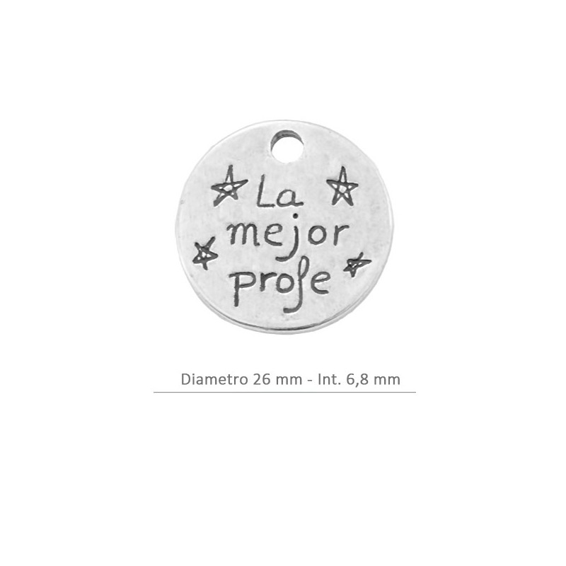 - Pendentif « Le meilleur professeur » dans zamac avec argenté. - Le diamètre est de 26 millimètres et la perceuse est de 3,8 millimètres. - Le prix est par unité.