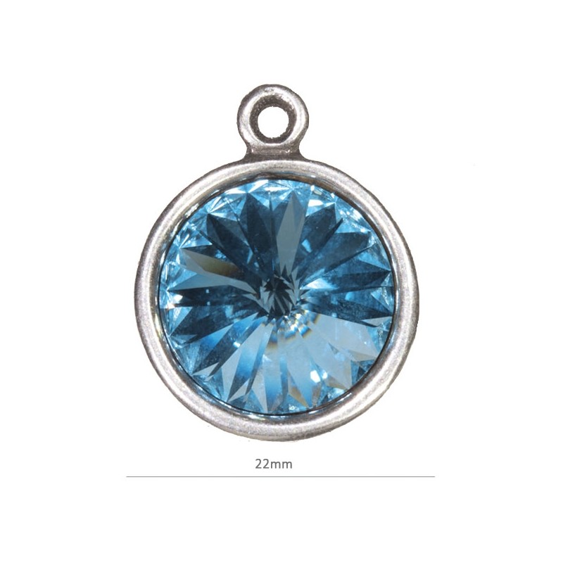 Pendentif de 22mm avec cristal Swarovski. Aigue-marine.