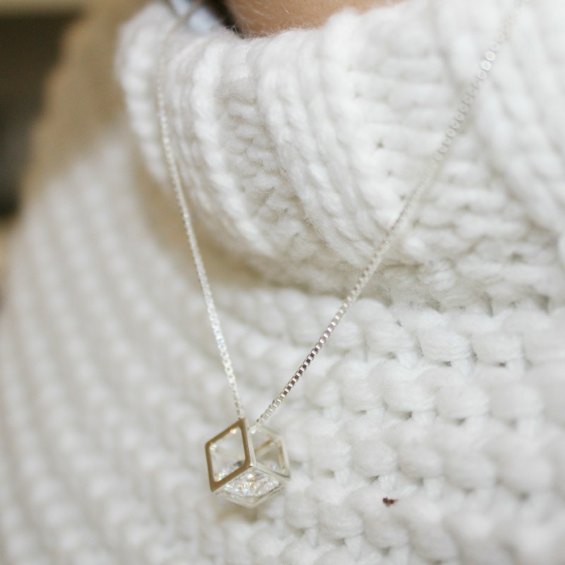 Zirconite cube pendentif 8mmx8mm-Cristal