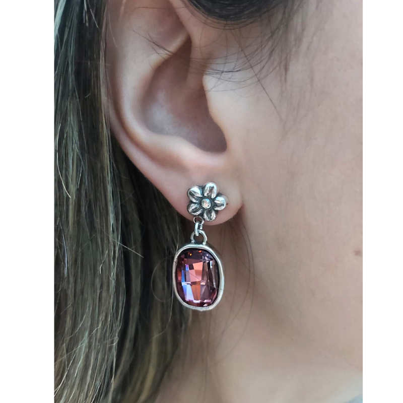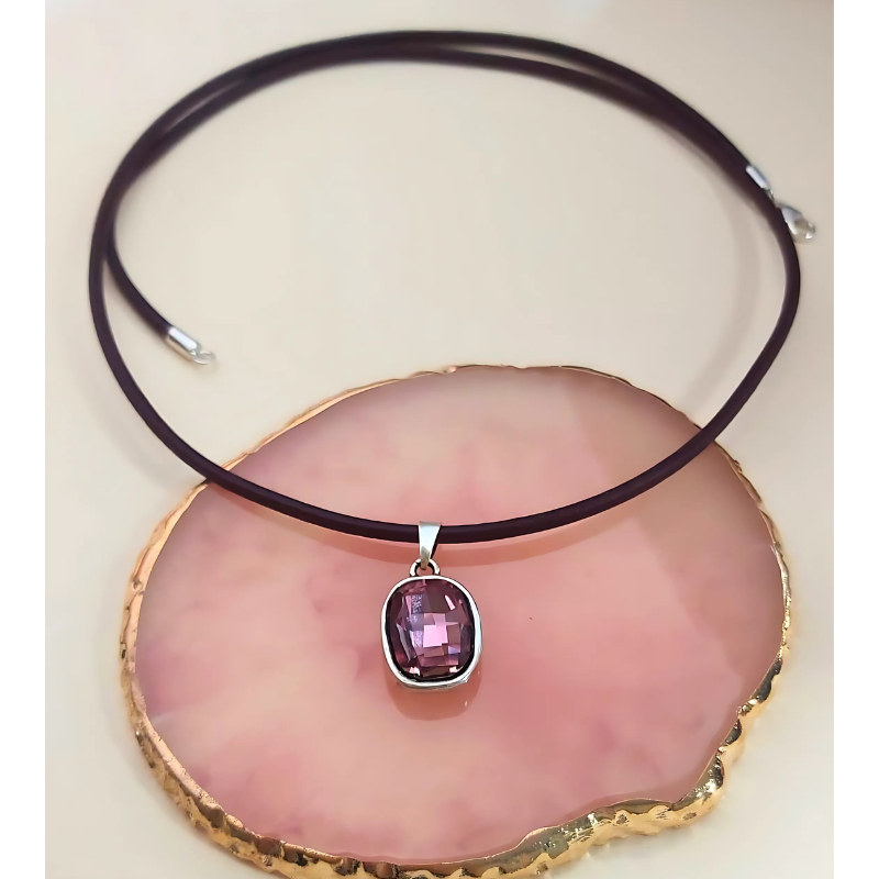Petit pendentif de 16mm avec Swarovski. Argenté. Antique Pink