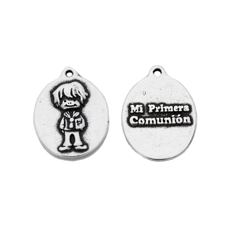 - Pendentif médaille de communion enfant dans zamac argenté. - Taille: 25x18mm 2mm trou. - Le prix est par unité.