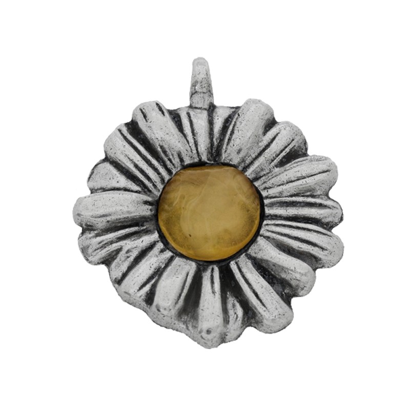 - Pendentif en marguerite en zamac avec argenté. - La taille est de 38x40mm. Perceuse de 4,30 mm. - Le prix est par unité.