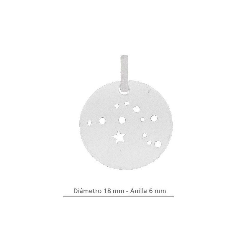 Pendentif en argent 925 avec signes du zodiaque en tôle. Diamètre 18 mm. Il a un anneau de 6 mm. Vendu à l’unité.