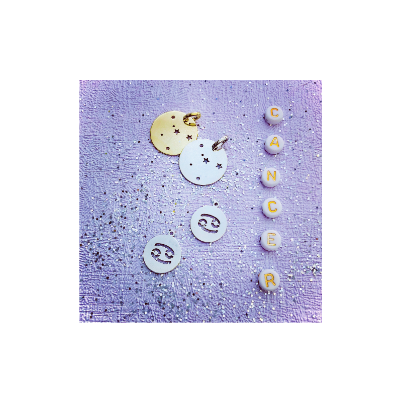 Pendentif en argent 925 avec signes du zodiaque en tôle. Diamètre 18 mm. Il a un anneau de 6 mm. Vendu à l’unité.
