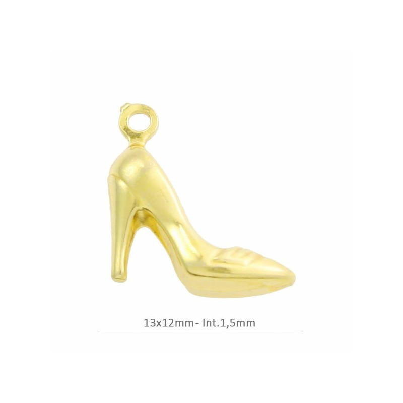 Pendentif de chaussure à talons avec bague, argent 925 doré