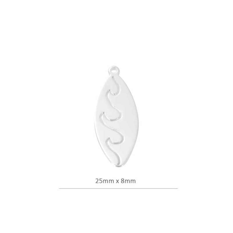 - Pendentif planche de surf en argent 925. - La taille est de 25 millimètres. - Le prix est par sac et le sac contient une unité.