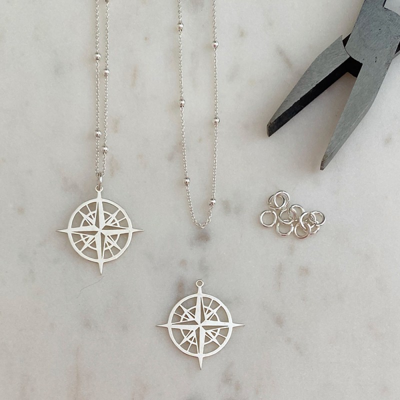 Pendentif boussole de 21 mm en argent 925