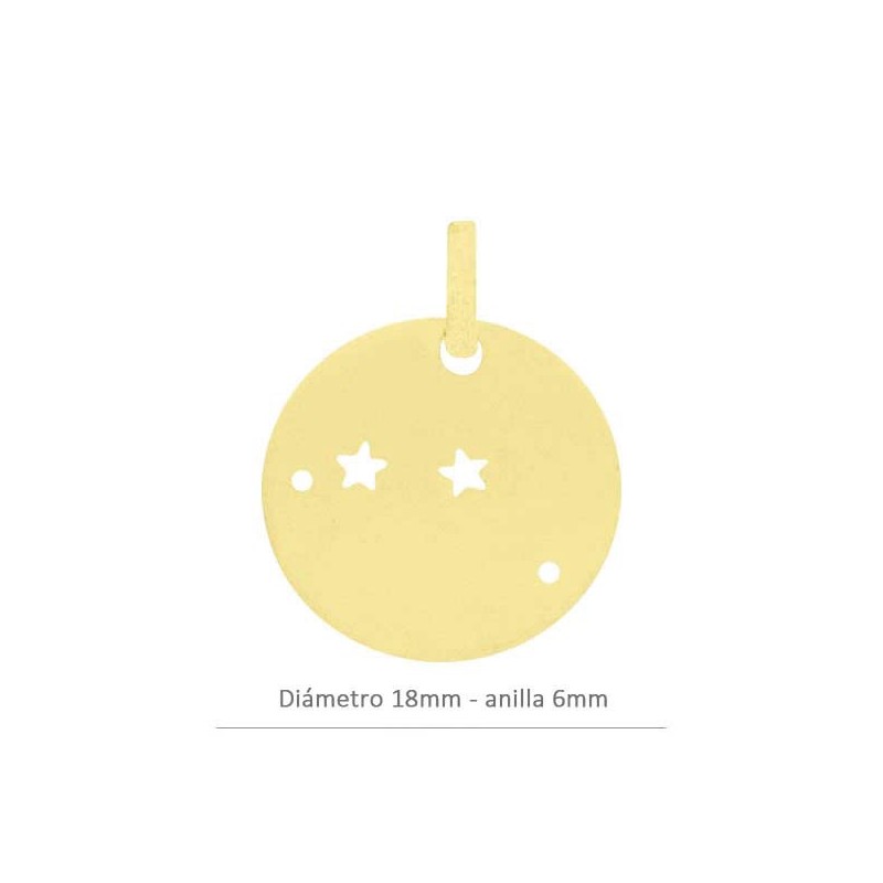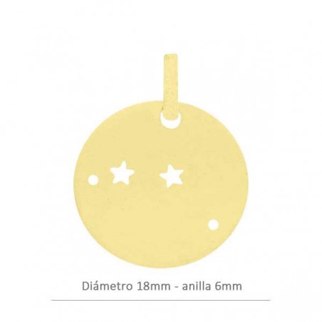 Pendentif en argent 925 baigné d’or avec des signes du zodiaque en tôle. Diamètre 18 mm. Il a un anneau de 6 mm. Vendu à l’unité.