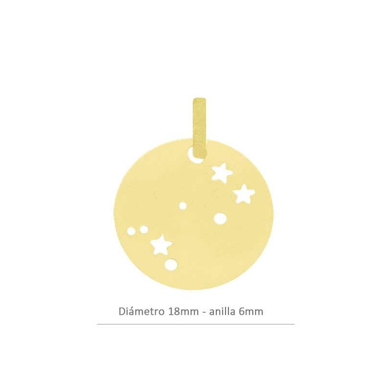 Pendentif en argent 925 baigné d’or avec des signes du zodiaque en tôle. Diamètre 18 mm. Il a un anneau de 6 mm. Vendu à l’unité.