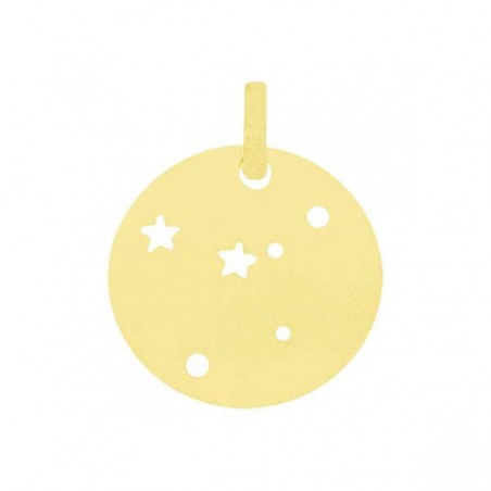 Pendentif en argent 925 baigné d’or avec des signes du zodiaque en tôle. Diamètre 18 mm. Il a un anneau de 6 mm. Vendu à l’unité.