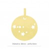 Pendentif en argent 925 baigné d’or avec des signes du zodiaque en tôle. Diamètre 18 mm. Il a un anneau de 6 mm. Vendu à l’unité.