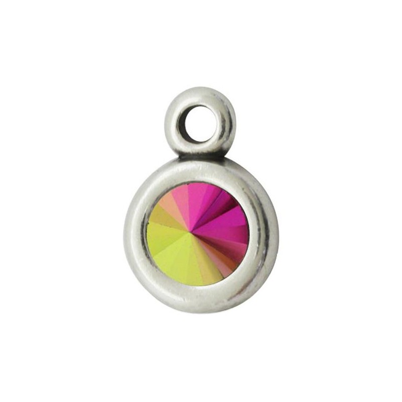 - Intercalaire macramé dans zamac argenté avec verre coloré. - La taille est de 23x13 millimètres et l’anneau a une perceuse de 2,5 millimètres. - Le verre est inclus et vient sans coller à la pièce. - Le prix est par unité.