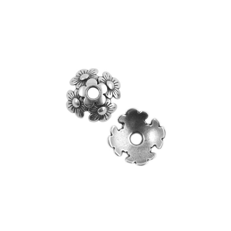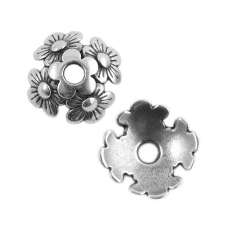 fleurs Coupelles en zamac argenté. Le sac contient 2 unités. La taille est de 12 mm. et la perceuse est de 2,5 mm.