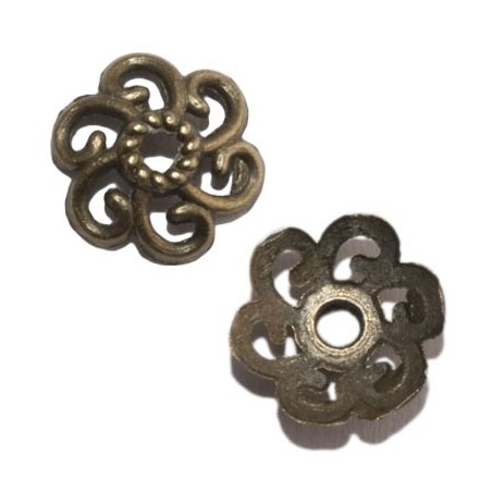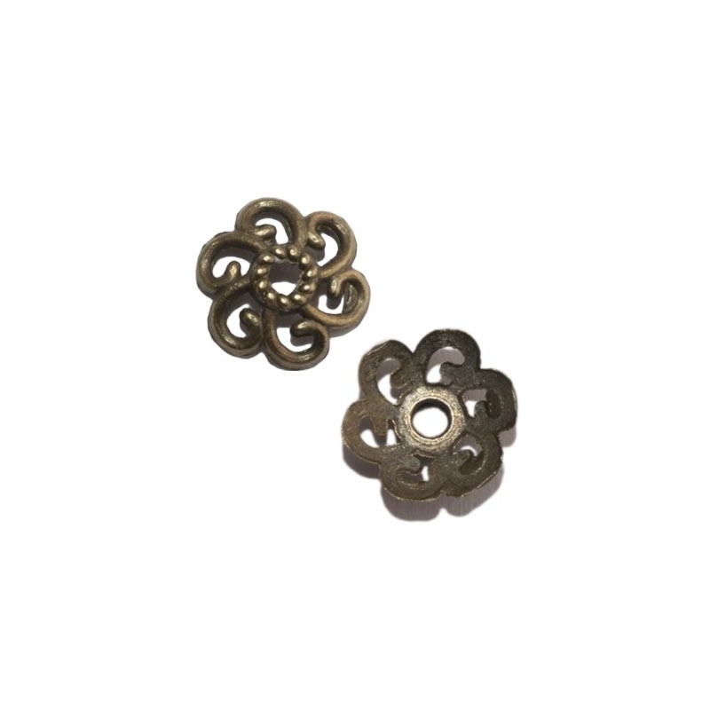 Coupelles hindoue à zamac avec un vieux bain doré. Le sac contient 1 unité. Le diamètre est de 11 mm. et a une perceuse de 2 mm.